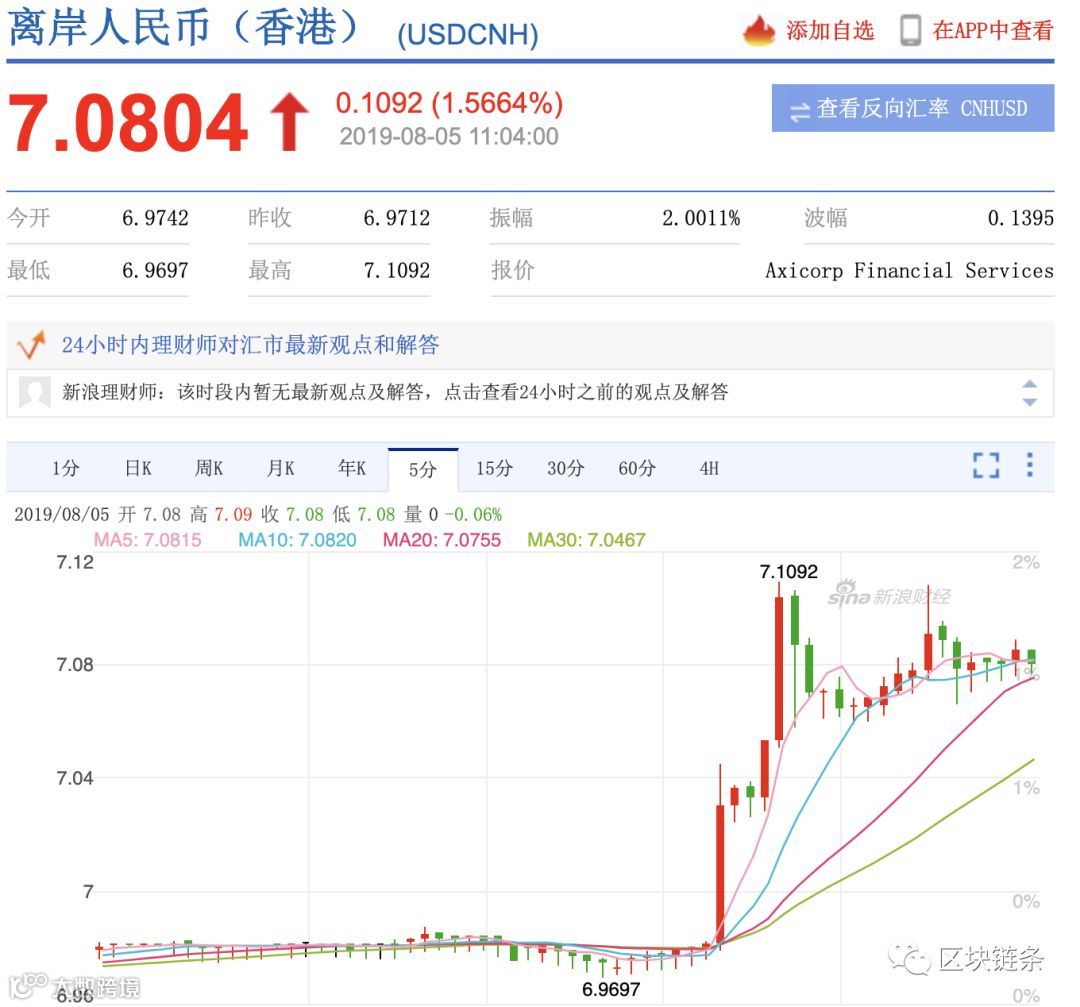 “历史性时刻!人民币汇率破7!!!币圈重大利好。”