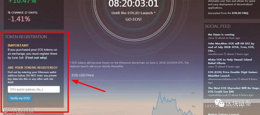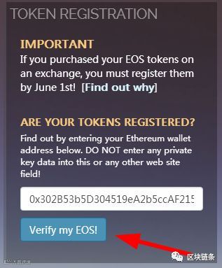 输入你的EOS所在的ETH地址,从钱包上把地址复制过来,最后点击下方蓝色按钮。