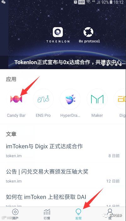 点击屏幕最下方的“发现”,在上方找到Candy Bar选项: