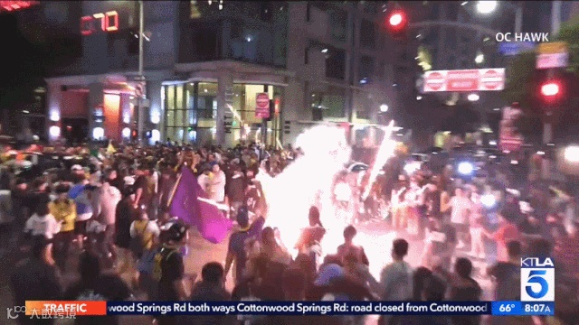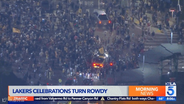 2020年10月11日上午,一份由洛杉矶市警察局的声明被发布,声明的内容是2020年10月10日晚,原本是庆祝胜利的活动,但深夜时分的时候一场庆祝胜利的活动演变为了暴力、对抗以及破坏性的行为。警察被人群扔玻璃瓶、石头以及其他物品。