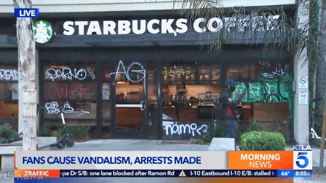 就在超过1000名球迷为期庆祝的时候,在斯台普斯的球馆附近,发生了一场打砸抢烧暴力事件,其中76人被警方逮捕。