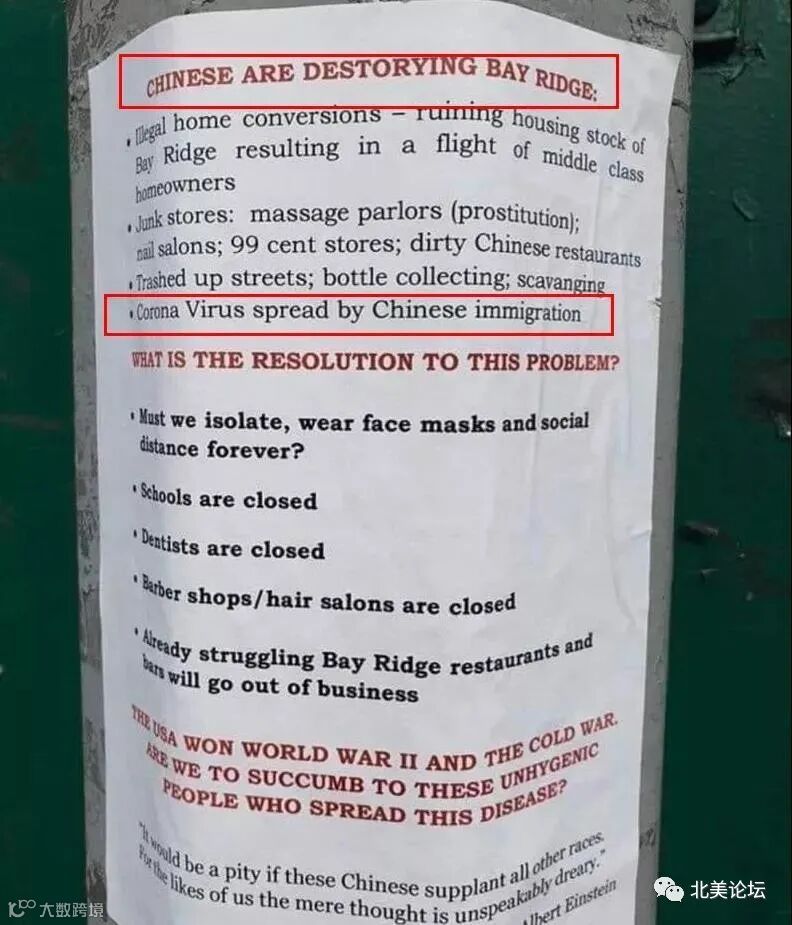 再往前追溯,布鲁克林区六月时竟然还发布过“仇华海报!”一些人荒谬的表示,是中国人将新冠病毒传播开来,并试图毁掉美国!