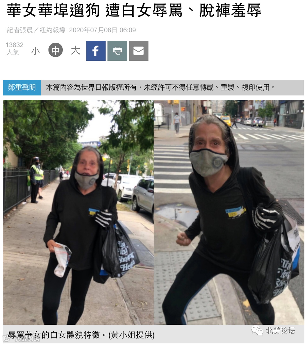 更加恶心的事是今年7月初,一名华裔女子遛狗时,被一名白人女子无端辱骂在“吃狗肉的中国人”。受害人明确制止让白人女子停止言语攻击,但令人意外的一幕发生了。该白人妇女不但试图对其进行肢体攻击,还当街脱下了裤子,让受害人“舔拭下体”。