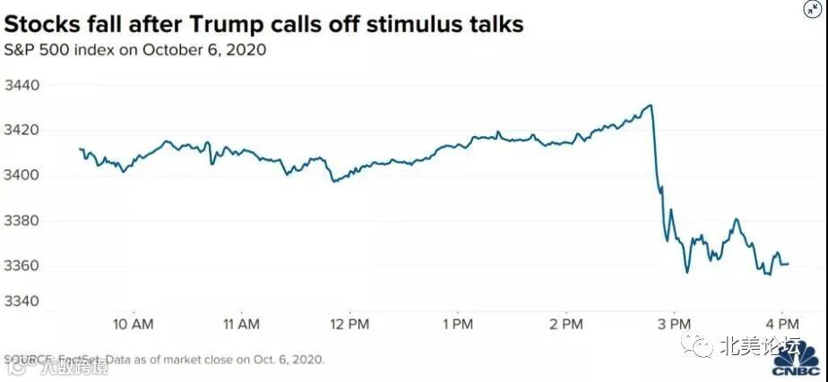 2020年10月8日,出院后的川普突然叫停了民主党提出的经济刺激提案。在推特上他发文表示,民主党的第四轮财政刺激方案是不合理的,表示拒绝,并命令其代表停止谈判,要求在总统大选结束后,再进行商讨。