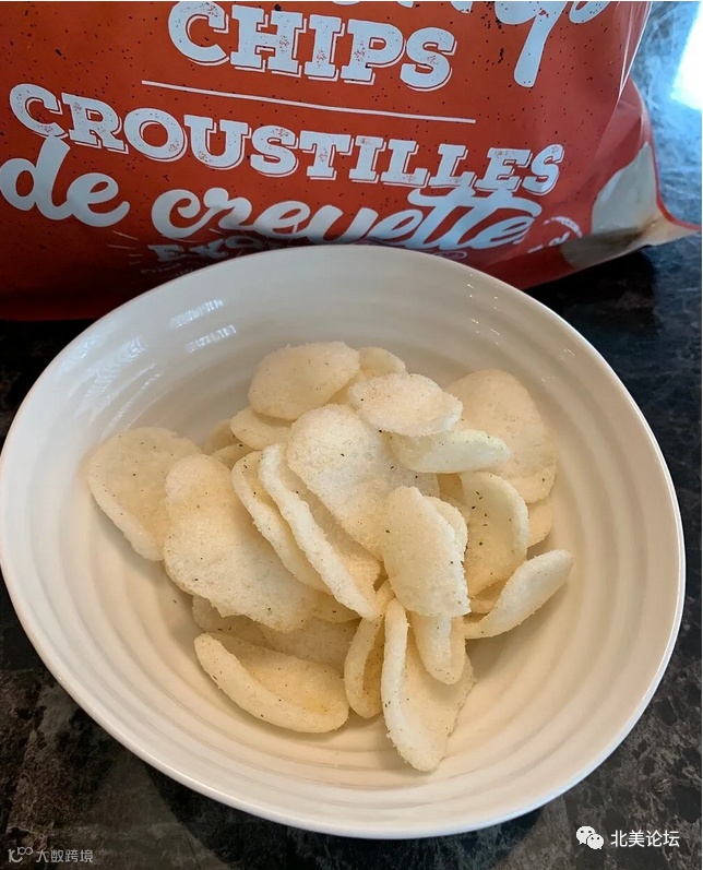 Costco 的这款虾片是蒜香牛油味!感觉这个咸香的味道和虾片就很搭!