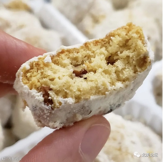 这款曲奇就比较神奇了,评价非常“两极分化”,网上夸赞它的的和吐槽它的的都很多。喜欢的人觉得吃起来口感绵软,外面裹着的糖粉增加了绵密感。