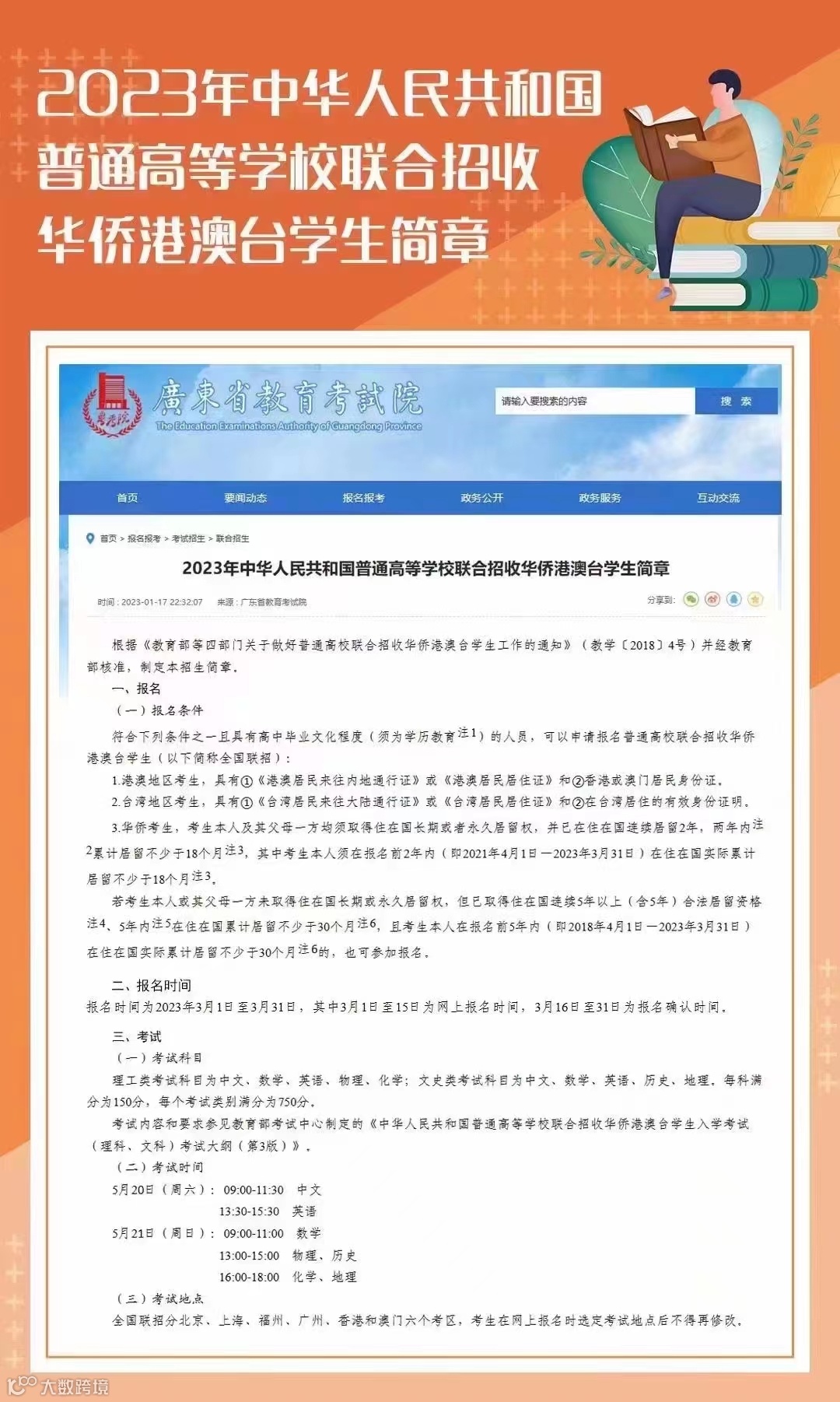 前海寰宇资讯2023华侨生联考生招简章新鲜出炉