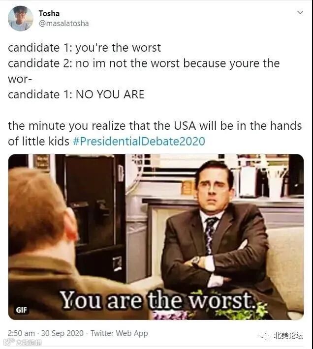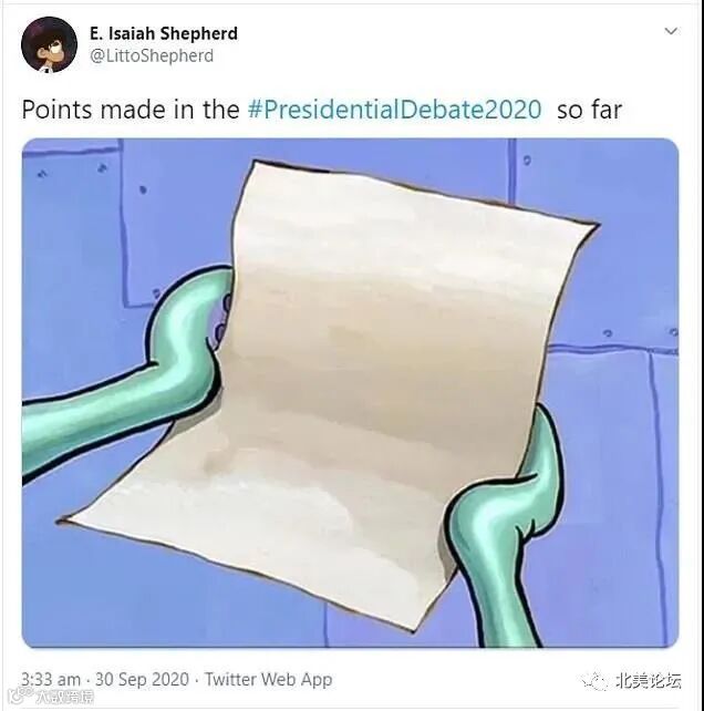 2020年9月30日辩论开始,我相信大家大多数都在家中边看辩论边吃瓜。现在带大家1分钟看完,辩论辩论明场面。