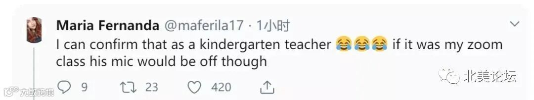 其中也有幼儿园老师表示,我可以确定,如果这是在我的zoom课上,我会分分钟切断他的麦。但幼儿园的小朋友很听老师的话,也会适当的闭嘴,但他们不会。