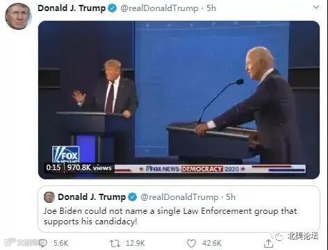 令人惊讶的是,就在辩论期间,川普的推特也没有停止营业。不用说,内容是以打击拜登为主。这真是一番骚操作,就……不太知道是如何操作的。