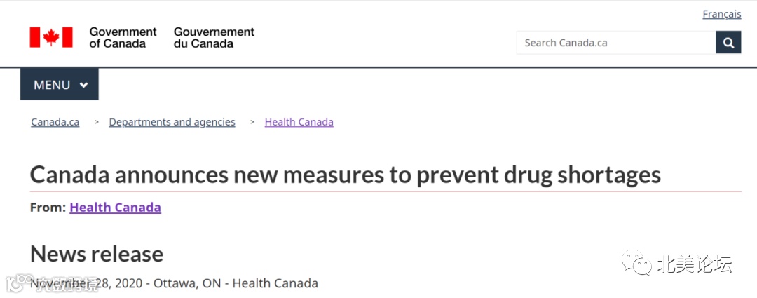 为此,声明说:“从11月27日开始,某些原本投放加拿大市场的药物将被禁止在加拿大以外地区销售,以免导致或加剧药物短缺。”