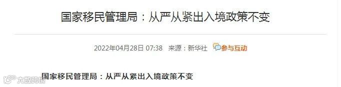对此,国家移民管理局新闻发言人、政策法规司司长陈杰在4月27日举行的新闻发布会上重申,将继续实施从严从紧的出入境政策,继续倡导内地人员非必要非紧急不出境。