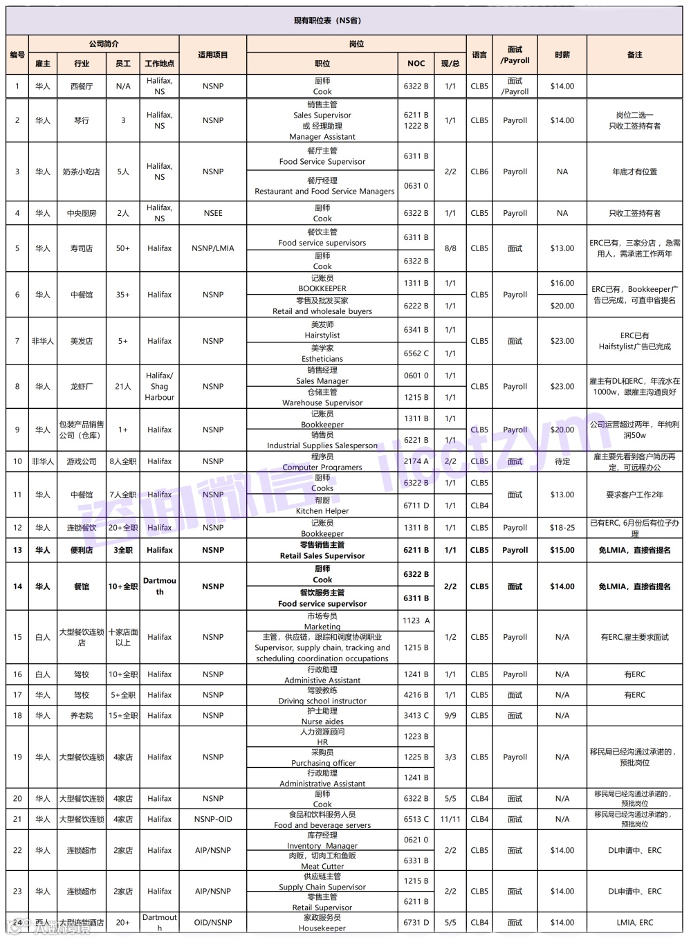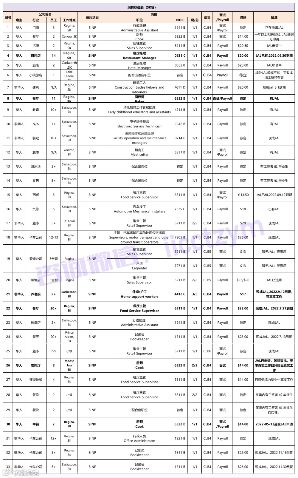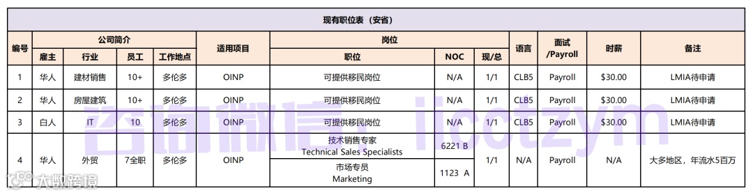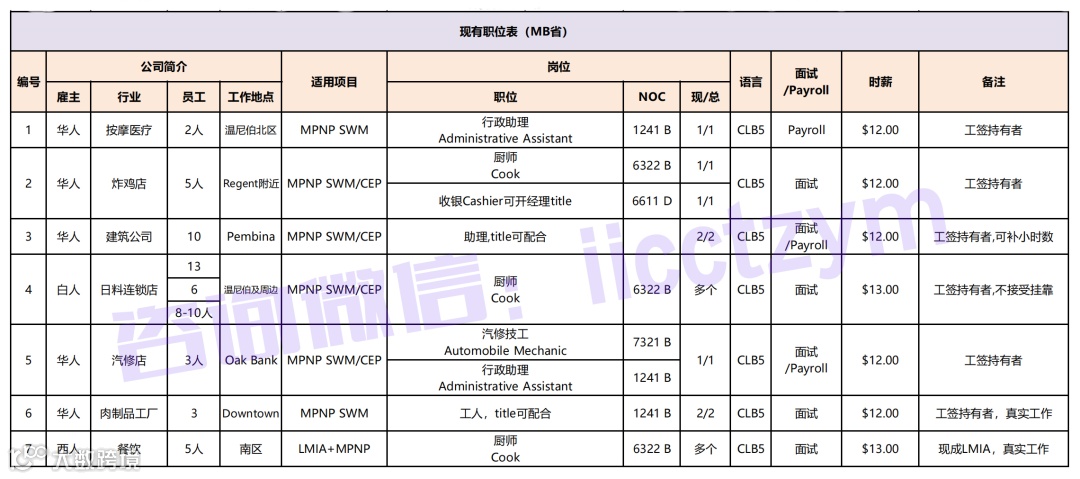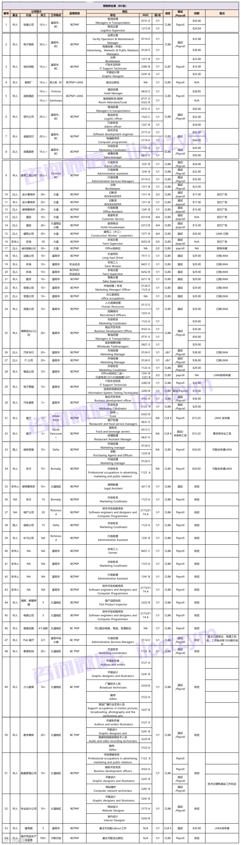 2、BC省岗位表汇总