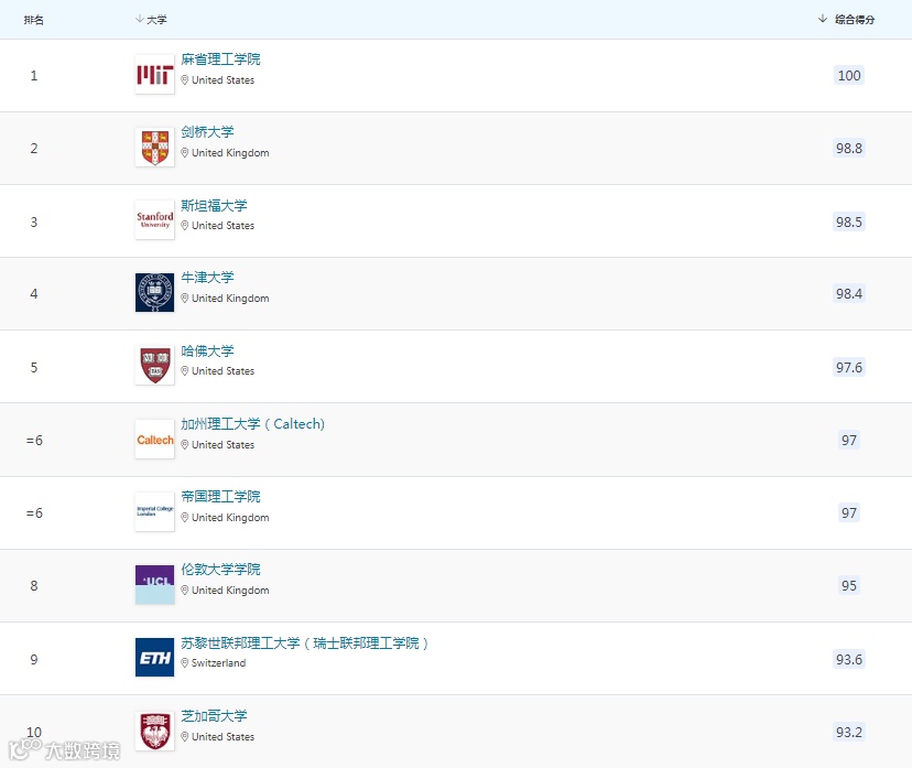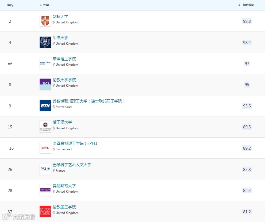 欧洲前10名依然是英国的学校霸榜,剑桥大学时隔多年反超牛津大学,排名世界第2、欧洲第1。