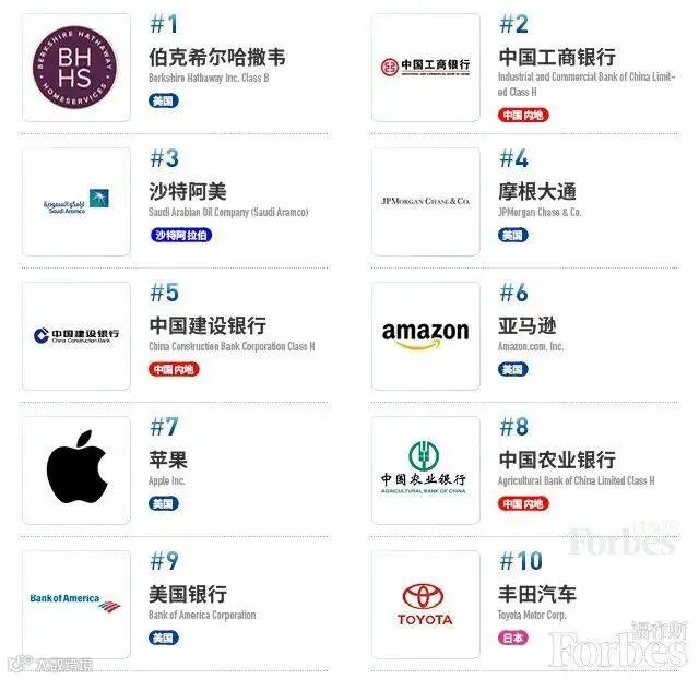 2022年5月12 日,《福布斯》杂志发布了2022全球企业2000强,其中,