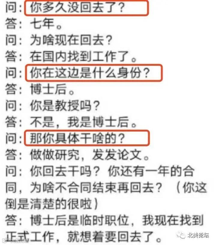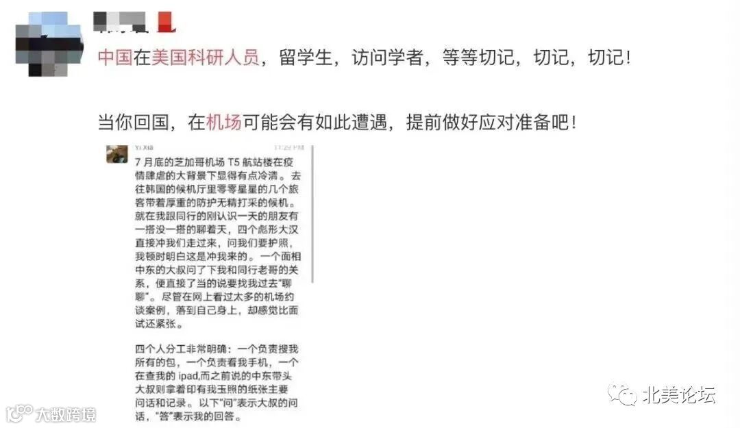 这位网友还提醒将要回国的科研人员,要提前做好心里准备或许将在机场受到盘查。