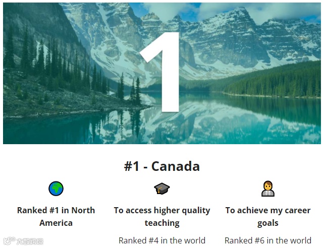 澳大利亚在“获得高质量教育”方面排第三,在墨尔本、悉尼、布里斯班等城市拥有诸多顶尖大学。除学习之外,澳大利亚拥有20个联合国教科文组织世界遗产,如大堡礁和悉尼歌剧院,是一个非常值得探索的国家。同时,毕业后较容易申请到工作签证,再加上比较宽松的移民政策,都是留学澳洲的优势之一。
