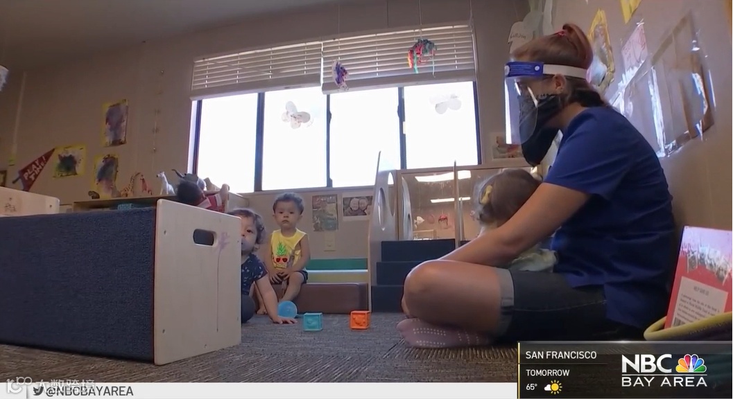 在旧金山湾区的一些儿童看护服务机构目前采取了将儿童分组并限制在每队10到12个孩子的小群体中。家长们被禁止进入该机构。门口有强制性的体温检查,以及询问以确保父母、孩子和家中任何人都没有接触过冠状病毒。