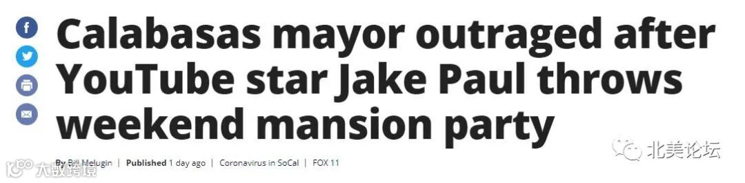 7月14日议员Bill Melugin公开表示:YouTube明星JakePaul上周六在家中无视社交距离安全,举办了大型的派对,对此感到十分愤怒!并表示他们这是不负责任,自私的行为!他们会因此付出代价!