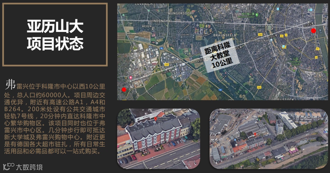 经当地政府推荐及支持,亚历山大项目旨在为科隆弗雷兴地区的新大学城提供全新的学生活动中心及学生公寓。项目将面向中国地区开放共30个投资移民名额共同投资,5年后项目整体上市出售,投资人收回投资款。