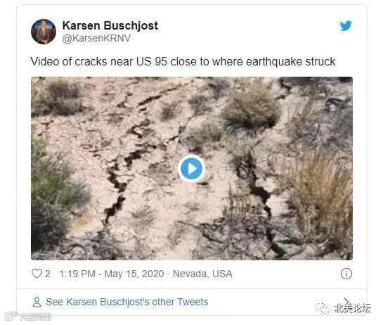 目前,工作人员已经在修复道路。 另外,根据内华达大学里诺分校的内华达地震实验室的说法,已有8000多人报告感觉到了震动。
