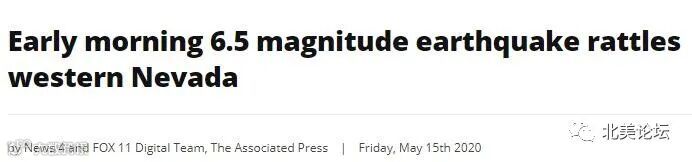 根据美国地质调查局(USGS)观测,地震震央位置在内华达州托诺帕镇(Tonopah)以西60公里处,地震的深度估计为4.7英里,属极浅层地震。