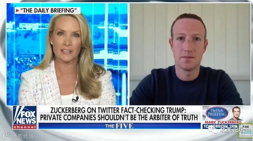 主持人达娜·佩里诺(Dana Perino)表示,扎克伯格告诉她脸书不会对公开贴文进行审查,除非有迫在眉睫的危险。