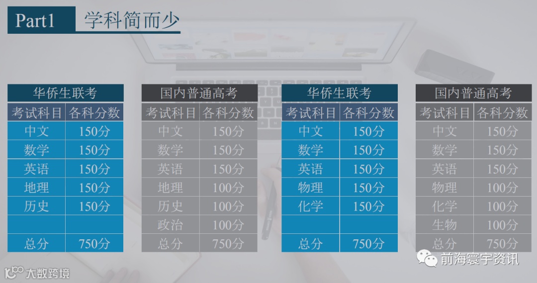 国内高考生注重能力数据,华侨生联考注重知识点了解,试题简单