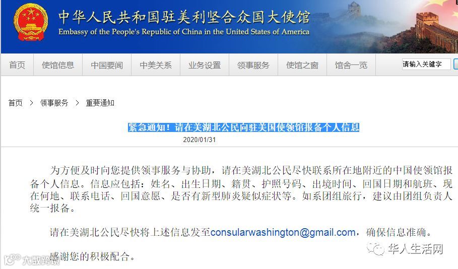 在这样紧迫的情势之下,中国驻美使领馆发布紧急通知。