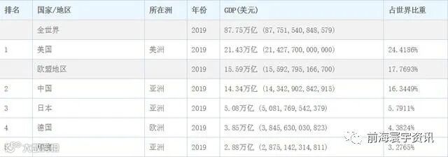按照2019年的数据,全球前五强国家分别是:美国、中国、日本、德国、印度。其中,美国和中国稳居前二没有问题,毕竟中美两国的经济体量都超过10万亿美元,印度经济发展较快,或将超过德国和日本。