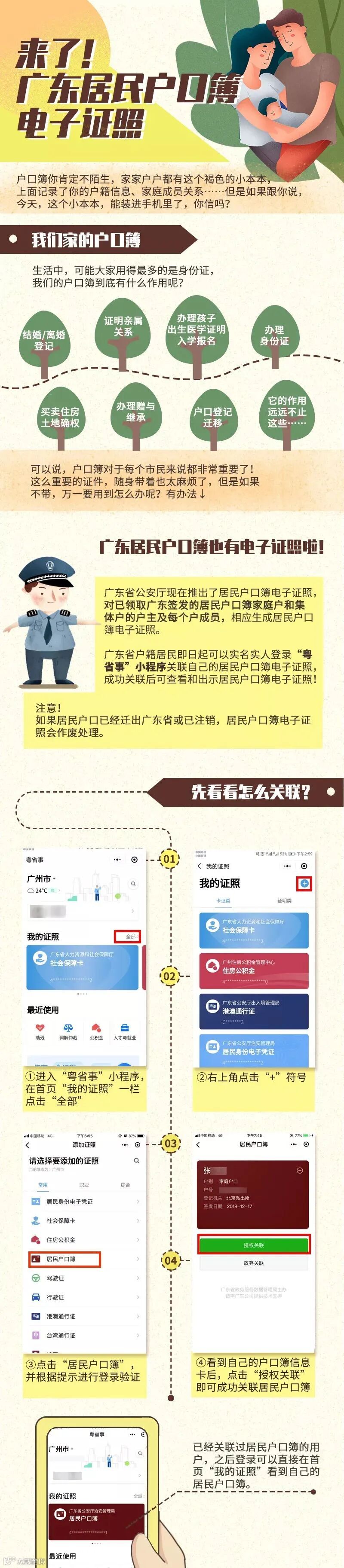 近日,广东省公安厅推出了居民户口簿电子证照,对已领取广东签发的居民户口簿家庭户和集体户的户主及每个户成员,相应生成居民户口簿电子证照。