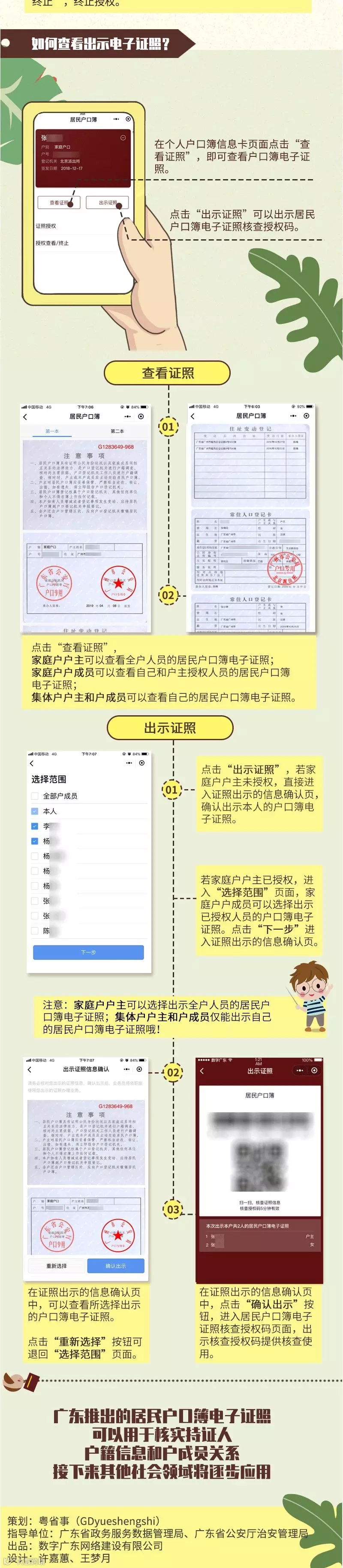 以广东省为例,广东省户籍居民可以实名实人登录相关程序关联自己的居民户口簿电子证照,成功关联后就可以查看和出示居民户口簿电子证照啦!