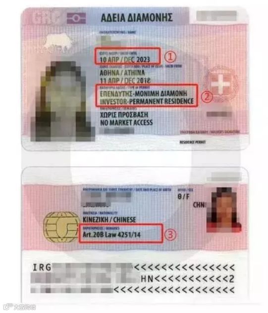 ②这是永久卡上标识“investor-permanent residence”,翻译过来就是投资者永久居留的类别,说明这个粉卡的主人是通过投资希腊获得的永居身份。