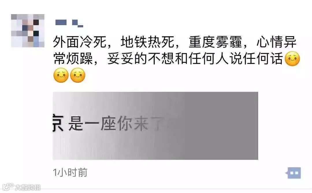 供暖开始,每天上班下班都开始走在霾伏路上,嗓子发炎,眼睛涩痛。偶尔有机会逃离他处,却发现他处越来越少,逃离的代价越来越大。最可怕的是你不知道真正致命的那一刻何时到来。