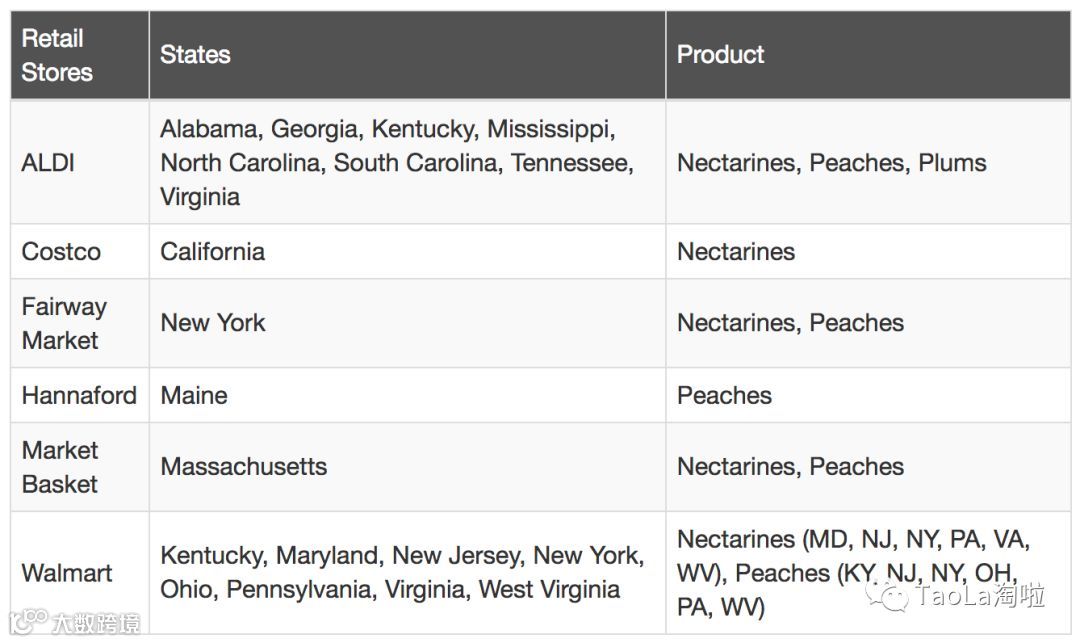 由于受李斯特菌污染,美国多个州大面积召回桃子、李子!