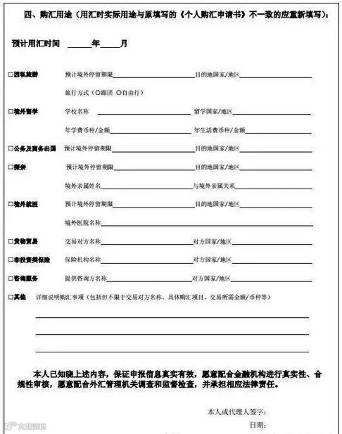每人每年只有5万美元的外汇额度!并且从2017年1月1日起,无论你是在银行柜面还是通过网银、手机银行等电子渠道办理购汇,均需要填写《个人购汇申请书》,明确填写购汇用途。