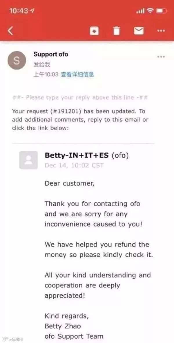 最近一网友在微博透露,自己ofo退押金难,因此把自己伪装成一个美国加州居民,用英文信方式,向ofo公司索要押金,结果很快就接到退款,而且还有一封英文道歉信,此消息一出,众多网友议论纷纷。