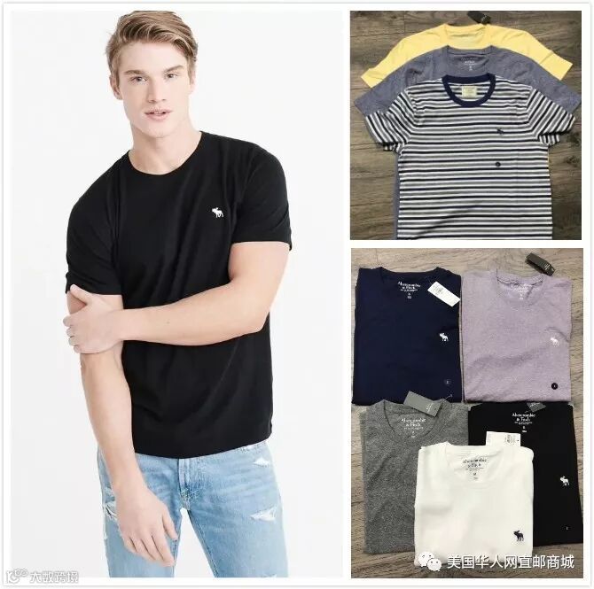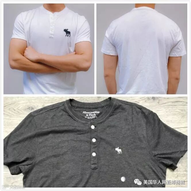 Abercrombie & Fitch AF 男款纯色T恤(纽扣款)