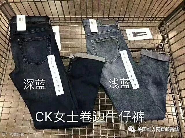 料非常柔软弹性也很好,上身很酥糊,裤脚卷边设计很好看哦,有浅蓝色和深蓝色可选,要买的趁早!国内Ck专柜就没有低于一千大洋的!!