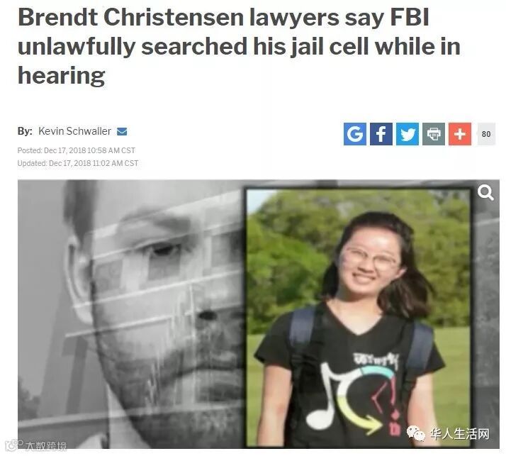 联邦法庭17日,针对绑架及杀害章莹颖被告克里斯汀森(Brendt Christensen)进行审前听证,克里斯汀森的辩护律师17日向法官沙迪(James E. Shadid)提出紧急动议,指控联邦调查局趁14日被告出席法庭听证会时,非法搜查了关押克里斯汀森的利文思顿郡监狱(Livingston County jail)牢房。