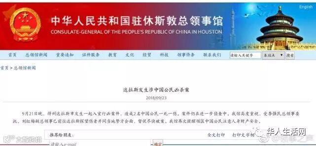 当天下午2点,正在当地协调处理此事的中国驻休斯敦总领馆的领保官员也与达拉斯警察局的两位高级官员见面,并表达了中国政府对此事的关切。据刘红梅副总领事介绍,达拉斯警方的态度非常积极,称他们将尽一切努力、尽早破案。