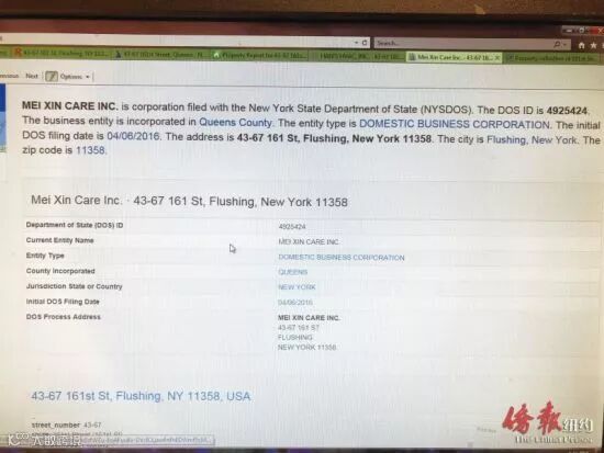 经查,月子中心所在地址最近一次成交于2016年7月20日,而月子中心于2016年4月6日。注册名称为Mei Xin Care Inc,注册号码为4925424,实体类行为国内商业公司。