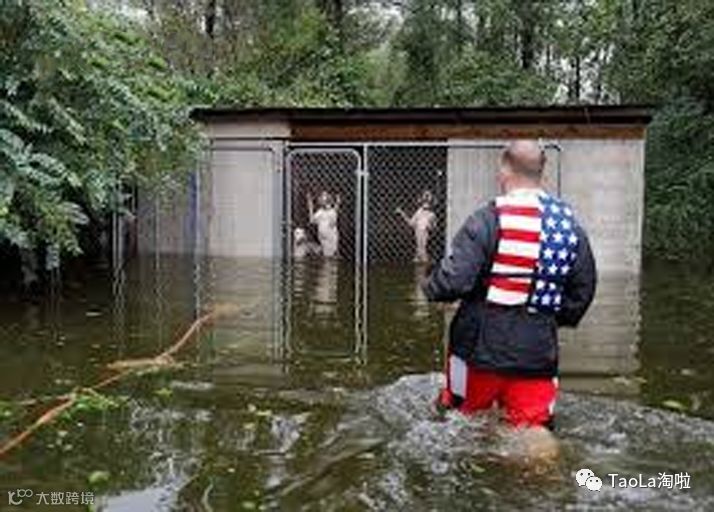 和八公、唐尼比起来,北卡罗莱纳州的这六只小狗就真的太幸运了。前阵子北卡招惹上了佛罗伦萨飓风,天好像破了个窟窿,万顷土地一下子变成了泽国。人在天灾面前都变成了蝼蚁,更别说小动物了。水漫金山的时刻,人人都在四处逃窜。谁能想到还被关在笼子里的小狗。