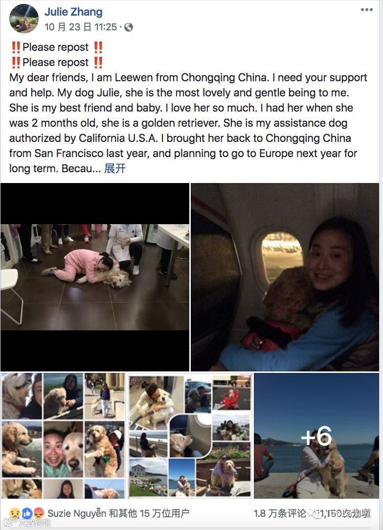 事发后,张女士一怒之下把这件事传到了脸书上,关于这件事的讨论也日渐甚嚣尘上,有的人责怪张女士没有看好自己的狗,也有的人痛斥夺走狗狗生命的人。这件事对张女士本人来说是沉重的打击,对养狗爱狗人士来说,也绝对是让人叹息连连的憾事。