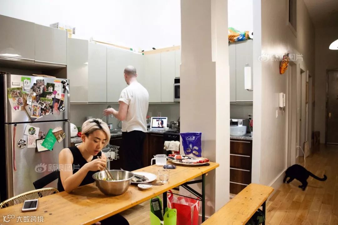 煜晨在家给自己做睡衣,Sam在订回中国的机票,他们养的猫则蹲在墙上看着他们。今年9月,他们要回中国举办婚礼,“家里非常开明,都很喜欢Sam。父母本来意思让我们出去好好玩一下,办个简单的仪式就可以了。”但煜晨想两家能正式见个面,“Sam的妈妈从来没去过中国,也想带她看看。”