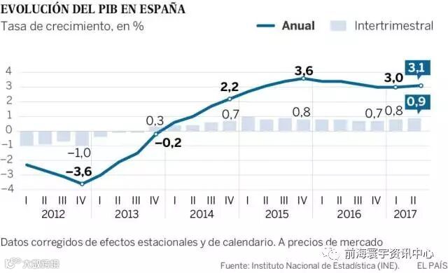 日前西班牙经济部长路易斯·德·金多称,他在周四的到宏观经济消息。另一个就是,国家统计局已确认是西班牙经济在第二季度增长了0.9%,比前一段时间多。此后不久,并宣布微创调高经济增长预测为2017年,目前为3%。四月和五月间的经济增长记录良好,大部分的消费者是由私人消费和就业升压主要原因。