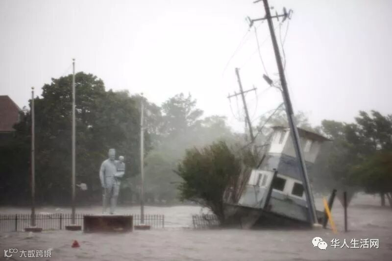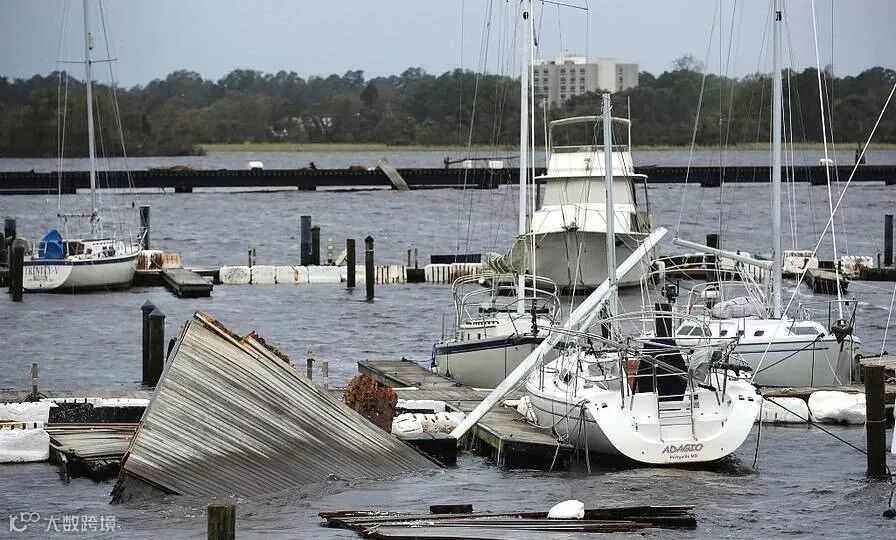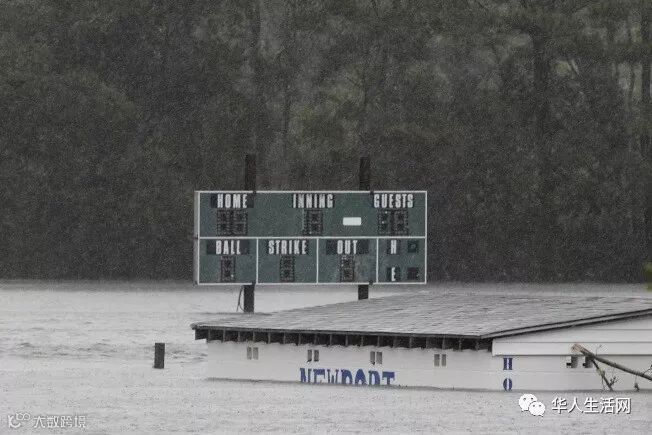 北卡州新港一座棒球场遭洪水淹没,只剩计分牌露出水面