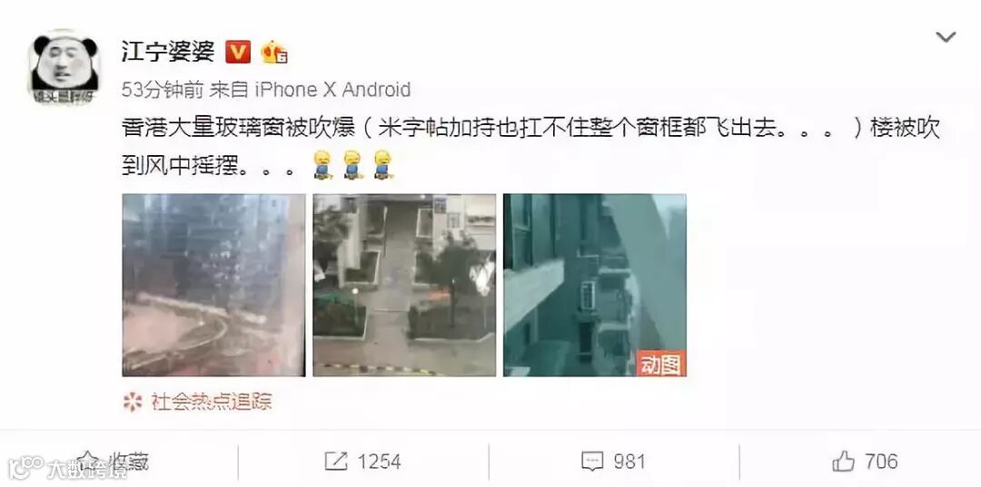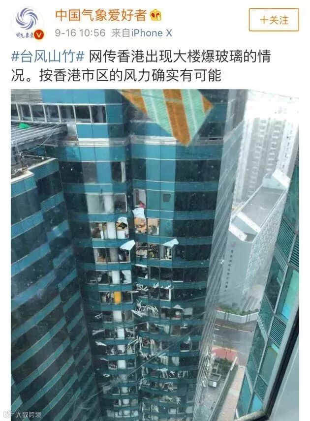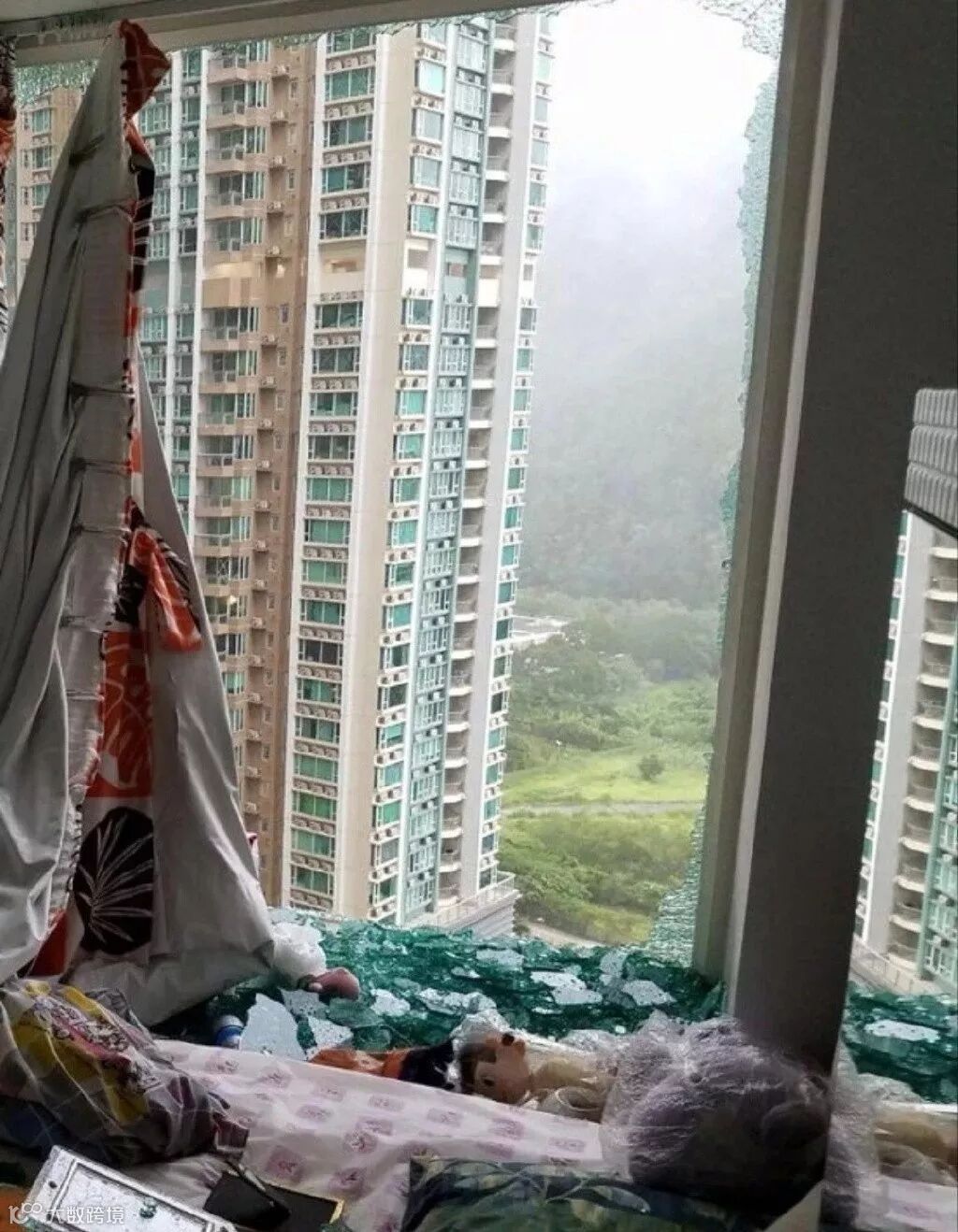 不过,遗憾的是,再多的胶布,也挡不住山竹巨大的威力啊!有深圳网友反映香港大量玻璃窗被吹爆(米字帖加持也扛不住整个窗框都飞出去)