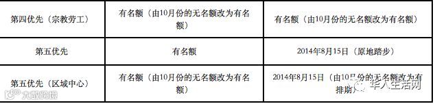 第五优先区域中心则由无名额改为有排期(排期为2014年8月15日),其余类别的排期没有变动。