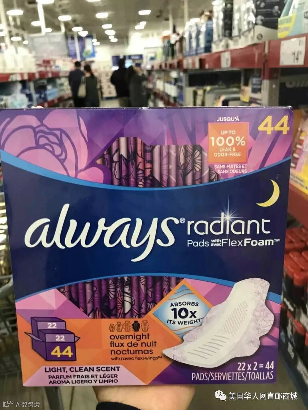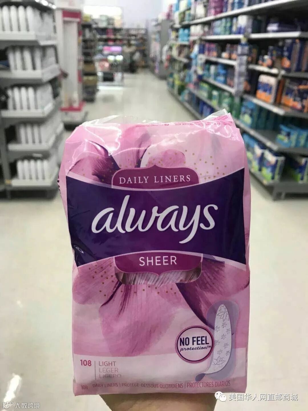 Always这个品牌真的是无荧光剂北美畅销品牌。护垫长度约长18cm*宽7cm,超强吸收,锁住流动液体,以及烦人的异味,带你体验超过十小时的干爽体验,舒适透气。